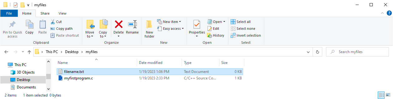 注意:如果未指定任何其他内容,该文件将在与其他 C 文件相同的目录中创建。