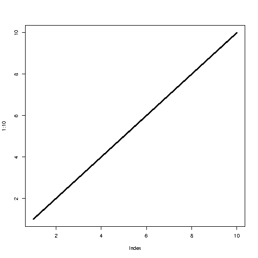 线条默认为实线。使用 lty 参数并为其指定 0 到 6 之间的值来指定线条格式。