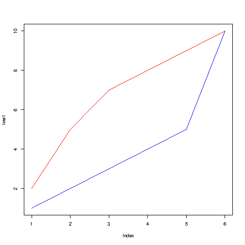 若要在图中显示多条线,请将 plot() 函数与 lines() 函数结合使用: